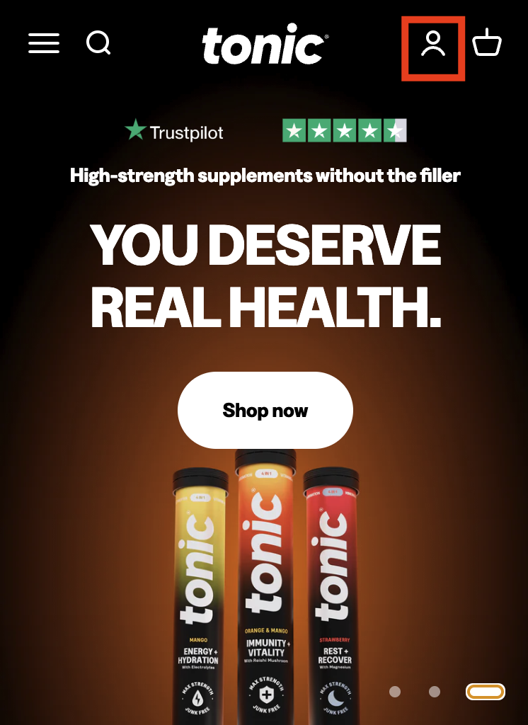 You can access your account by clicking on the little person icon at the top right of our website (next to the cart).