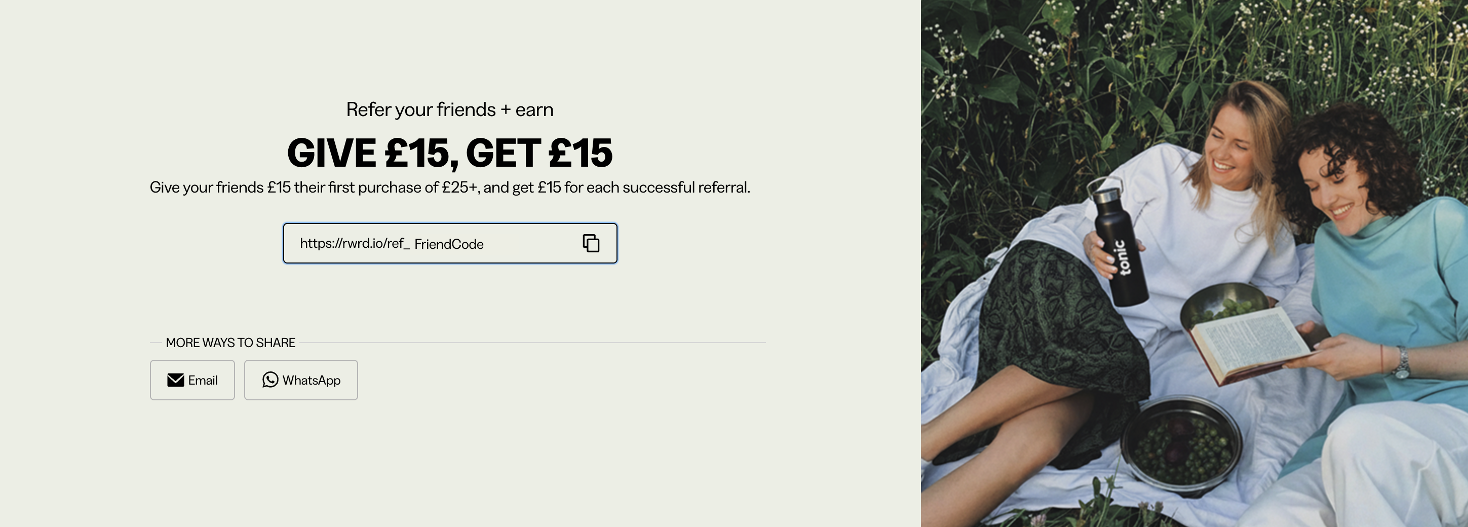 When they make their first purchase of £25 or more, they’ll get £15 off – and you’ll earn £15 in Tonic Rewards once their order is confirmed.